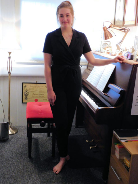 Some of the examiner’s comments included: “Hands were well balanced in this flowing account, with an even tone in the passagework and some musical shaping of phrases….The outer sections flowed well, with a supportive left hand and mostly even passagework in the right….but overall this was well controlled with the pedal….The opening was unhurried and expressively played, with smooth legato in the left hand and a singing melody. The tone was warm throughout but well projected when necessary. There was a sense of musical understanding, despite small slips….Prompt responses throughout, with good security of notes for the most part and mostly well controlled tone….This flowed well overall….Perceptive responses throughout with only small slips.” The examiner also wrote in the General Comments: “A good result, Grace – well done!”